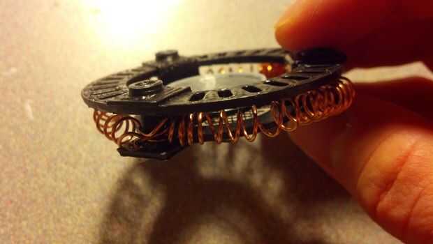 Una vez que la malla de alambre es completa, y las bobinas se unen, el último paso es pegar el anillo medio en la parte superior poniendo toques de pegamento caliente en las tres torres. Una vez hecho esto, la Asamblea superior es completa!