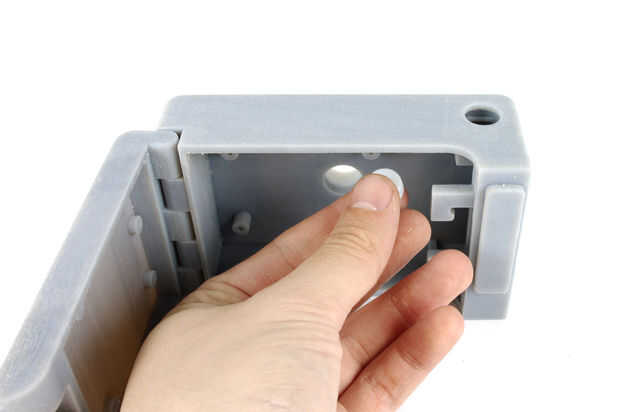 Inserte la placa redonda en la pista debajo del botón, tal que la parte superior del interruptor táctil es directamente debajo del botón de disparo. Debe tocar, pero el botón de disparo no debe estar aplicando fuerza en el interruptor. El interruptor debe ser capaz de rebotar hacia atrás después de (como hacemos todos).