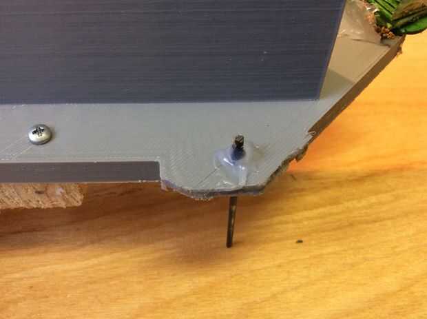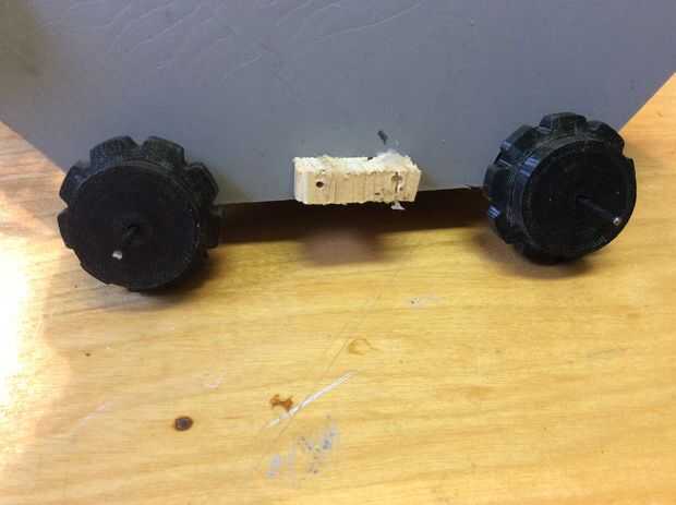 En primer lugar, usted necesitará sacar el filamento caído de los pozos de rueda dentada en las piezas base y los soportes y el clip de los soportes exteriores como se indica, para que el agujero en el medio tiene aproximadamente medio centímetro de espacio alrededor de él. Luego, llenar el espacio con pegamento. Usted también necesitará clip una ranura en los pozos superiores para el eje del motor ir. Luego, el taco de madera a la parte inferior de la pieza base con los orificios de tornillo dado el tornillo y pegar secciones de varillas en los orificios inferiores de las bases. Luego, pegar las ruedas dentadas motrices a los motores y deslice en los pozos de rueda superior, elevar la pieza con palitos. Entonces, atorníllela en su lugar, asegurándose de que hay poca fricción entre las ruedas dentadas motrices y el pozo. Luego, deslice los piñones regulares sobre las varillas inferiores. Después, deslice el soporte y enroscar en la parte inferior. Después, mida la distancia entre los agujeros en la parte superior para perforar agujeros en el plástico, cortar para que quepa y luego enroscar. Ahora se montan sus soportes.