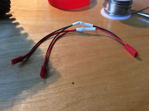 En primer lugar, usted tendrá que conectar los motores de cada lado en la serie, pero asegúrese de que están girando de la misma manera. Para ello, prueba la polaridad de cada motor con una batería de 9 voltios para averiguar que el poste es que. ASEGÚRESE DE QUE TENER ENCOGIMIENTO DE CALOR EN TODOS LOS CABLES ANTES DE QUE LA SOLDADURA. Luego de la soldadura el positivo de un motor para el positivo de un conector JST hembra y la negativa del otro motor al negativo del conector JST. Luego, soldar los otros dos polos uno al otro con algún alambre. En el otro lado y encogimiento del encogimiento del calor. Luego, realizar un divisor de potencia soldando todos los aspectos positivos de un conector JST hembra y un conector JST macho juntos y soldar todos los negativos juntos. Después de eso, conecte el repartidor de potencia a los CES y conecte los cables del receptor de los canales del acelerador y el elevador de su receptor (Asegúrese de que uno de los cables rojos se corta y los interruptores están encendidos). Luego, ponga todo en el envase y conectar los motores a través de los agujeros en el envase. El tanque ya está terminado.