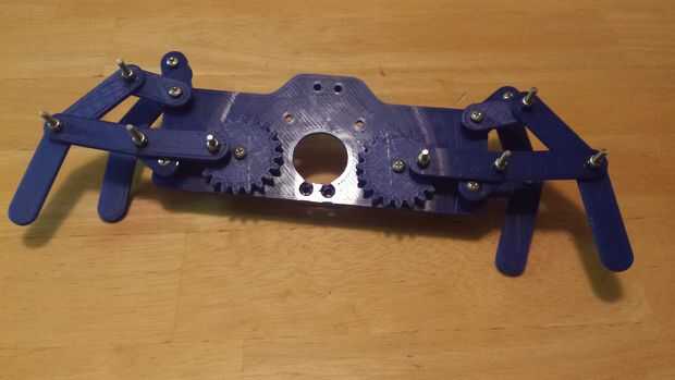 A continuación, unir los dos vínculos colocando el rodillo en la ranura y separar el engranaje y la manivela de la polea y el marco con separadores de 3mm, uno para cada lado. Traer juntos les apriete el conjunto de eje entero (Gear -> 3mmSpacer -> loca -> 3mmSpacer -> manivela) con un perno y la tuerca de fijación para que cuando el engranaje gire la manivela girará también, haciéndolos uno.