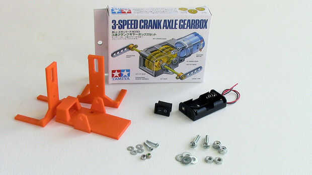 1caja de engranajes de eje manivela 3 velocidades Tamiya Pololu robótica y electrónica. También es capaz de encontrar en jugueterías y tiendas de hobby.
