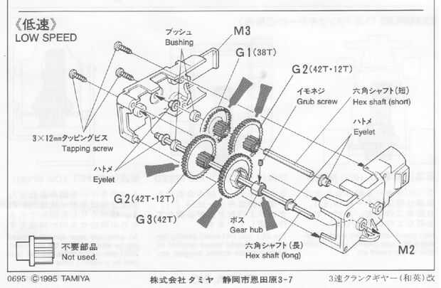 Montar la caja de cambios con la opción de Baja velocidad . El video muestra a la Asamblea. Al terminar Asegúrese de que ambos ejes están centrados en la gearbox.and Asegúrese de que puede acceder el tornillo de fijación a través de la ventana de la caja de cambios.