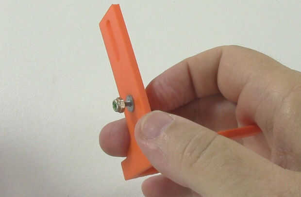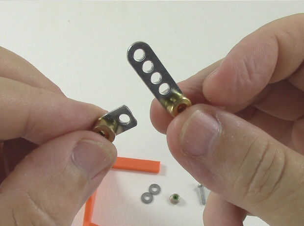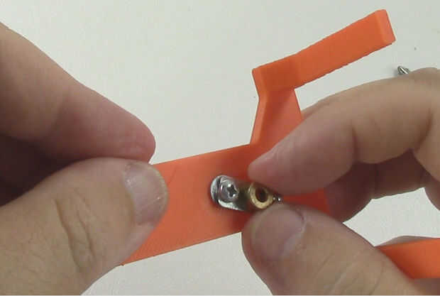 Queremos utilizar el agujero más cercano en el collar del brazo inestable. Aunque no es necesario cortar el brazo, lo hace para una instalación más limpia. Desea que la cabeza del tornillo en el mismo lado que el collar. Coloque una arandela a cada lado de la pierna y fijarlo con la tuerca de bloqueo. Apriete lo suficiente para que el brazo de manivela gira suavemente sin ser demasiado flojo. Necesitarás una llave inglesa o alicates para esto.