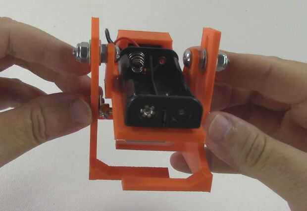 Asegurar que la tuerca 10-24 está apretado en el tornillo. Coloque una arandela plana #10 en uno de los tornillos. A continuación coloque la ranura de la pata sobre el tornillo. Asegúrese de que el collar de manivela se ajusta sobre el eje al mismo tiempo. Coloque otra arandela en el tornillo y terminar con una tuerca de bloqueo. Para facilitar las cosas, pase un tornillo de la tuerca de bloqueo unas cuantas veces para aflojar para arriba un poco antes de instalarlo. De esta manera como aprieta la tuerca, no afloje el tornillo. Asegúrese de que la pierna aún puede moverse libremente sin atorarse. Este tornillo se entiende sólo como una guía.