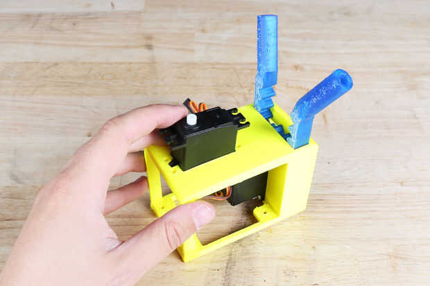 Deslice el servo de la parte inferior de su soporte y el perno en su lugar.