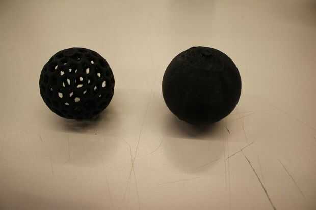 Hemos probado dos formas: una concha sólida con un espesor de 3mm y una esfera de patrón Voronoi con un espesor de tubo de 3mm.