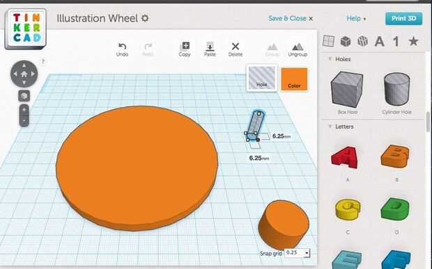 Añadir un agujero de cilindro en el espacio de trabajo--hacerlo mm 6,25 6,25 mm.  El valor predeterminado 20 mm altura está muy bien.