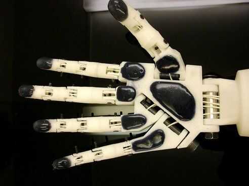 aquí le damos una mano de robot de músculo artificial que eventualmente podría ser utilizada como un reemplazo protésico de una mano humana. Los "huesos" son 3d impreso en PLA y los músculos artificiales de goma de silicona y piel fueron emitido