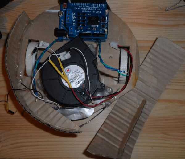 Subir a la Arduino el programa desde GitHub: https://github.com/satr/Robot-vacuum-cleaner-controlled-by-Arduino-and-motor-shield