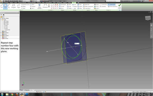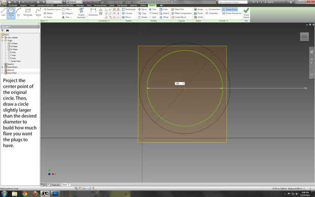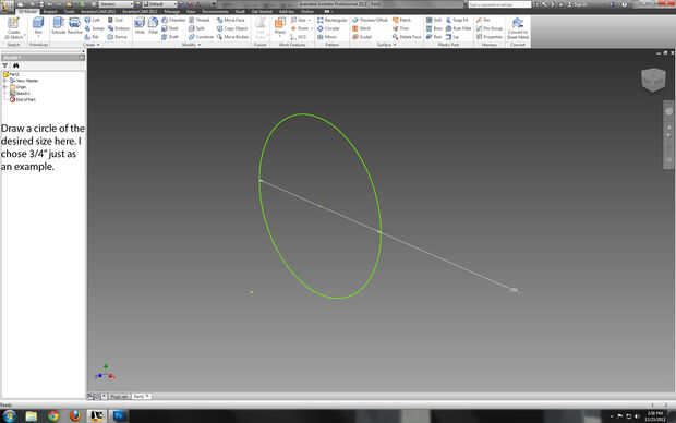 5. El punto central del bosquejo 1 del proyecto y crear un círculo de diámetro interior deseado. (Yo usé 1/2")
