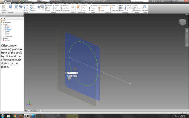 4. Un nuevo plano de trabajo a una distancia de.125 en offset y hacer un nuevo dibujo 2D