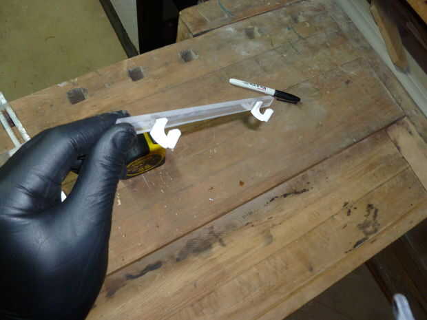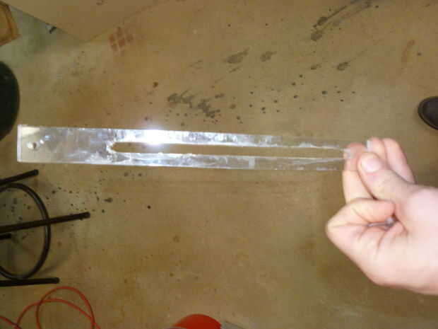 1) cortar las formas apropiadas de acrílico usando los planes proporcionados (do no perfore los agujeros en la pieza de arriba o el orificio superior del lado del pedazo si planea epoxying en su lugar)