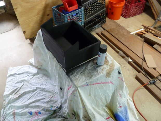 4) cortar las tiras de soporte de tanque y pegamento y atornille en su lugar dentro de la caja.