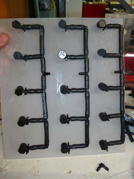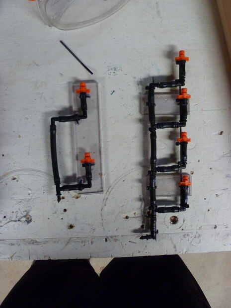 Usted puede notar que mi lado de agua de los rociadores de tanque es diferentes en diseño y número de rociadores. Ignorarlo y seguir con el diseño que he esbozado arriba como funciona mejor. Puede utilizar el mismo número de rociadores en cualquier lado si le gustaría pero no realmente vi la necesidad de que la espalda eran sólo limpiar de cualquier solución adicional en la parte posterior así que me decidí a tener 5 en la parte delantera y dos en la parte posterior.