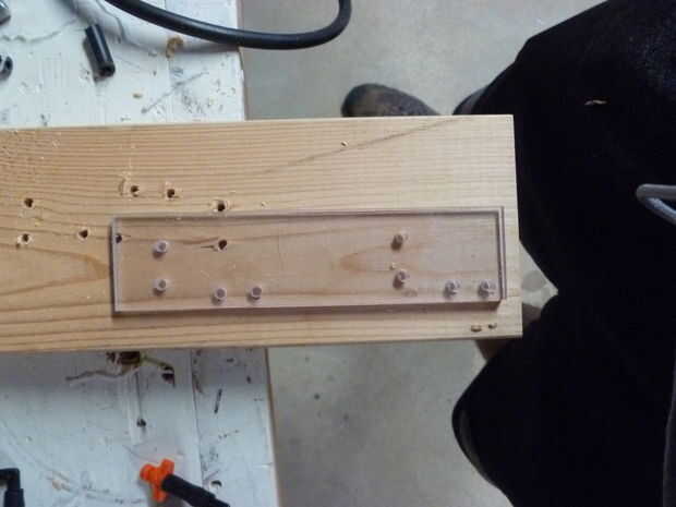 3) Taladre los orificios en el acrílico.