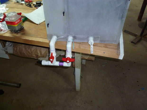 Nos propusimos hacer los drenes de PVC y la línea de retorno a la bomba con la solución de la fuente durante el proceso de grabado.