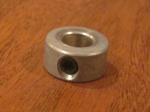 Mi idea para mantener el pedal en su sitio fue a poner un simple tapón en medio de ella. Alternativamente podría ser reemplazado con un tapón en cualquier lado así. El tapón es sólo un simple pedazo de aluminio con un agujero en el medio y un tornillo en el lado. El diámetro externo del anillo debe ser más delgado que el grosor del pedal para no llegar de la manera de pedalear.