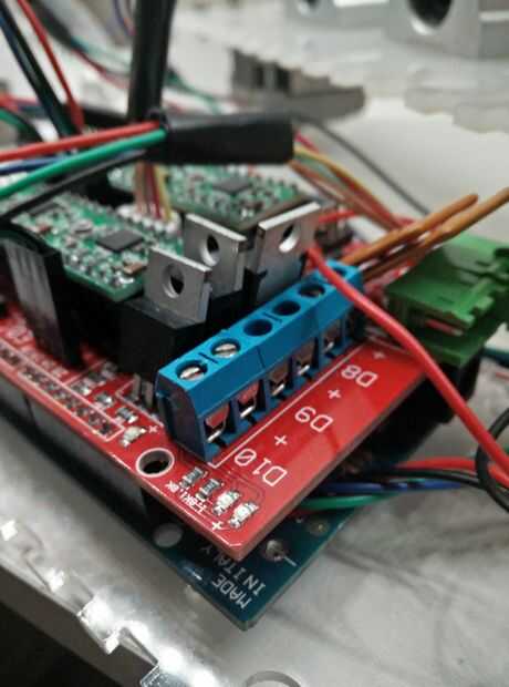 Hotend utilizando el esquema anterior de alambre, la soldadura de los cables rojos a D10 (terminal de tornillo) y +. Otra vez la polaridad no importa en este momento porque el hotend sólo es cortocircuitar un resistor de prueba de la llama para calentar para arriba. Entonces el cable los cables de termistor al T0 en el tablero. La polaridad también importa en este caso porque es una resistencia.