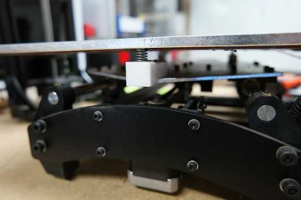 Dimensiones de los bloques no son críticos y dependerán de la máquina que está trabajando. Puede utilizar bloques simples rectangulares de cualquier tamaño razonable con igualmente sensible distancia entre los tornillos. En este caso, los bloques son 15 mm de profundidad, donde se perforan los orificios de nivelación y unos 12 mm de profundidad donde van los tornillos de montaje. Proporciona un montaje muy rígido. Asegúrese de que sus tornillos niveladores ir todo el camino a través del bloque para maximizar la rigidez. Puede salirse con dimensiones más pequeñas para conservar más de su capacidad de construcción vertical. Cuando haya terminado, la placa de cama y tren de aterrizaje deben moverse como una sola pieza con ningún bamboleo.