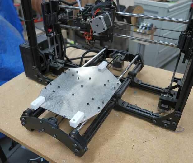 I atornillada el teflón bloques de soporte tornillo de nivelación, montar los rodamientos y comprobar el movimiento suave. Fue un poco tambaleante, por lo que se ha acuñado un par de los bloques de rodamiento utilizando tiras de aluminio de un refresco puede para suavizar las cosas sin permitir que ningún bamboleo. Una vez que el movimiento era suave, sustituya la correa.