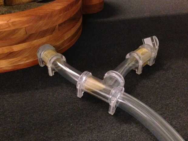 Necesitaba una solución a un tubo redondo en un piso en la base de la impresora, y así dise que la interfaz para servir de doble función y ventilar aire así. Puede deslizar una puerta especial en la interfaz para mantener las abejas mientras Desconecte la tubería y hacer ajustes, que me permite trabajar en la impresora sin obtener picada.