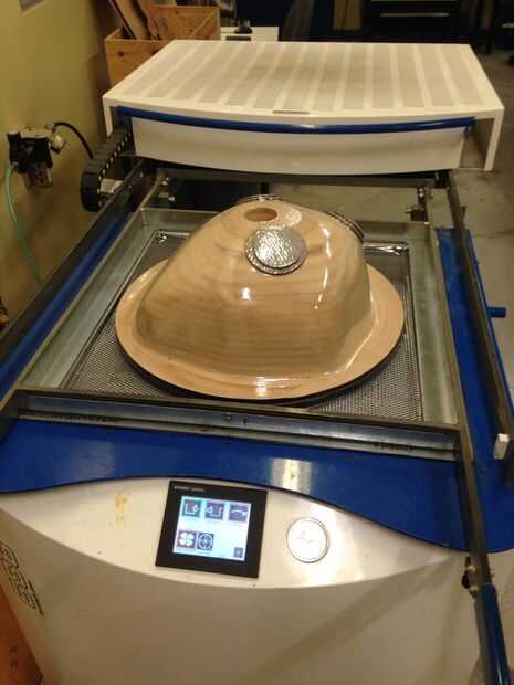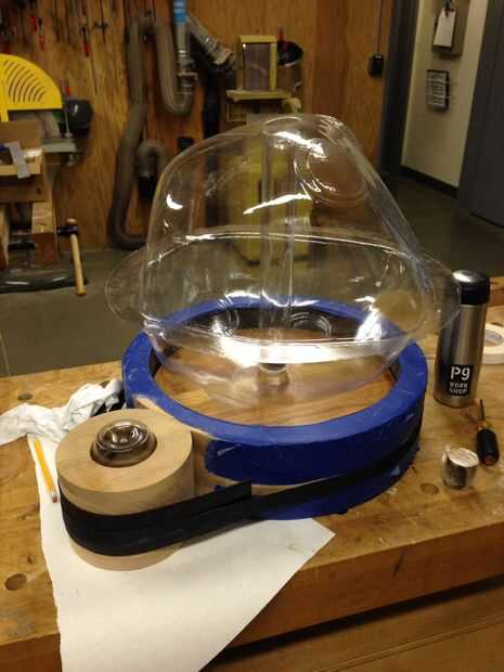 El petg se formó por la calefacción en un antiguo vacío que sacaban el material hacia abajo sobre un enchufe molde hecho del MDF y molido utilizando un router CNC de 5 ejes. Desarrolló una mejor técnica de fresado en el proceso de molienda los dos moldes de la cáscara y escribió un Instructable para él, enlace aquí.