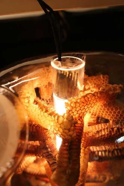 En este caso la cama de impresión es una cáscara que encierra la impresora y confinado a las abejas a este espacio. La clara está hecho de petg, un material algo resbaladizo que desalentará a las abejas para unir peine directamente a la cáscara.