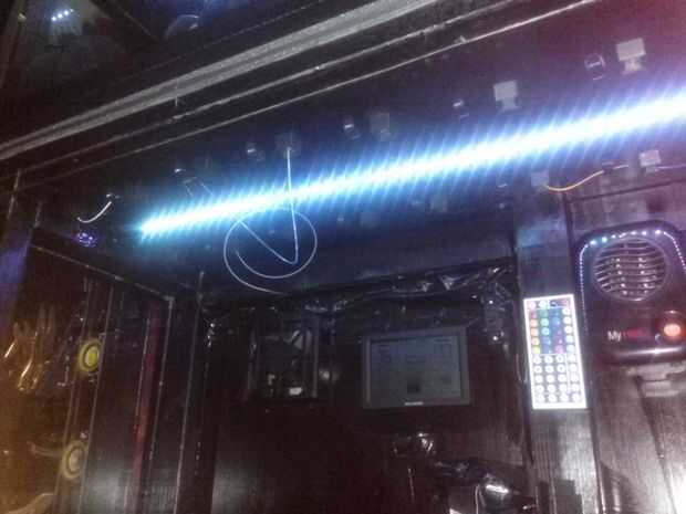 Las luces LED son simples... Usted puede mirar en YouTube sobre cómo cortar y empalmarlos... Estaba bien vale la pena usar las luces RGB... Todo esto debería costar cerca de $25-30 para hacer.
