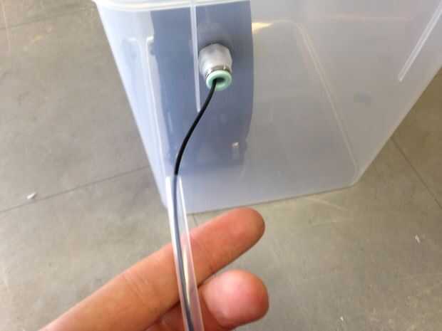 Inserte una bobina fresca de su material para que el filamento sale tangente directamente en el puerto de filamento. el filamento del hilo de rosca en el tubo de teflón y luego fije el tubo en el puerto. Corté mi tubo para ser aproximadamente 34" de largo. Conjunto la cámara desecante cerca de la impresora tal que el tubo tiene una suave curva en la extrusora (el más agudo de la curva, la fricción más). Imprimir lejos!