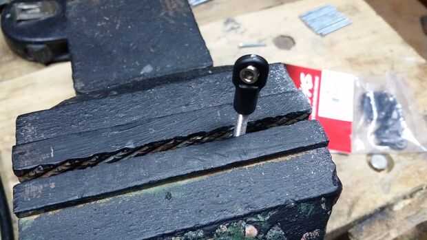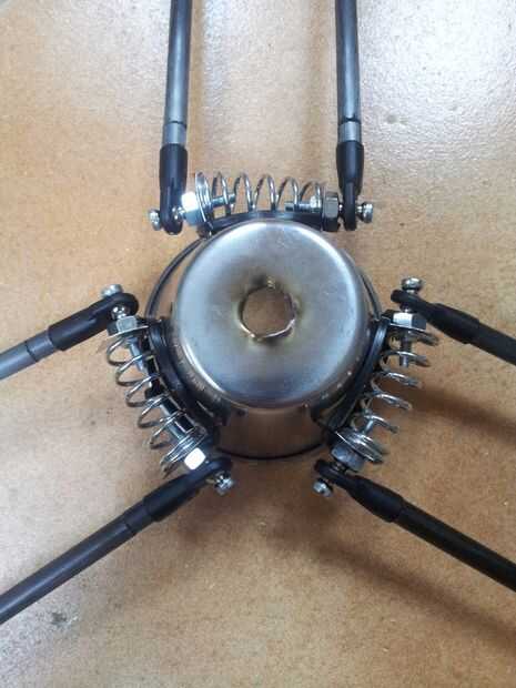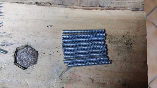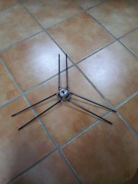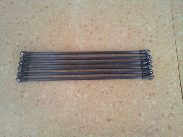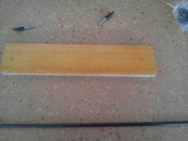 Para la construcción de los brazos, cortamos seis trozos de tubo de fibra de carbono de 215 mm y 12 piezas de varilla roscada de 50 mm. Luego en un bosque, atornillar dos tornillos a una distancia de 250 mm y cortamos la cabeza del tornillo. Luego pegamos las barras de tubo de fibra de carbono y traxxas. ponemos estas barras en los dos tornillos que pusimos en la madera. Este procedimiento debe hacer para las varillas de 6.