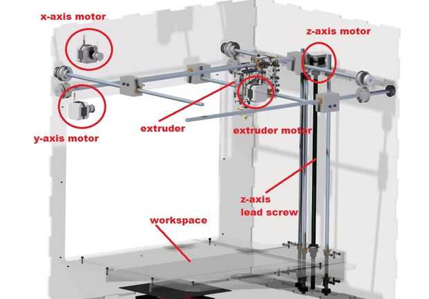 3. híbrido. Tienen el espacio de trabajo y extrusión (o herramienta) comparte los 3 ejes de movimiento. Esto le permite tomar ventaja de los beneficios y minimizar los inconvenientes de (1) y (2). Elegí este método. Decidí que la extrusora se movería en x-y y el espacio de trabajo movimiento eje z. Esto es algo lógico que el método FDM imprime capas a la vez, por lo que la mayoría de los movimientos en el plano x-y de todos modos. La alternativa a esto establecer es que el espacio de trabajo se mueven en x e y, mientras que el extrusor sólo proporciona movimiento eje z. La desventaja de utilizar un espacio de trabajo móvil en un proceso FDM, es que tienen plástico en las temperaturas cerca de punto de fusión y la máquina es "chapotear" todo a altas velocidades.