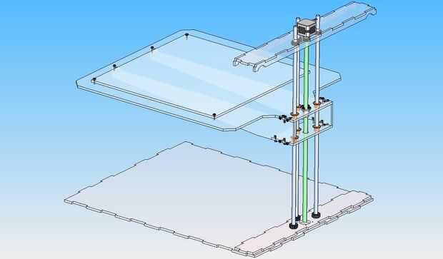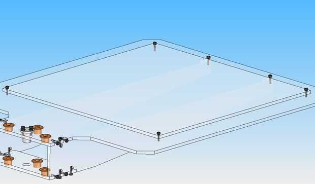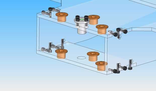 En el área trasera de la mesa de trabajo es el espacio para los rodamientos. Opté por tres ejes de apoyo ya que el voladizo será alta de piezas más grandes. Uno de los ejes de compensación proporciona un momento adrizante para contrarrestar el peso de la pieza. A través del centro es una tuerca Acme para conectarse con el tornillo Acme.