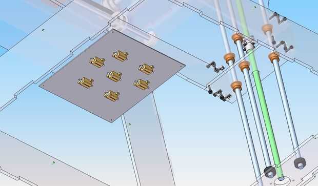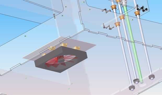 Este es un diseño bastante simple, y simplemente montaría con separadores. El tamaño de la Asamblea permite todavía la mesa de trabajo extender hasta el fondo de la caja (el calentador se mete entre las patas de la mesa).