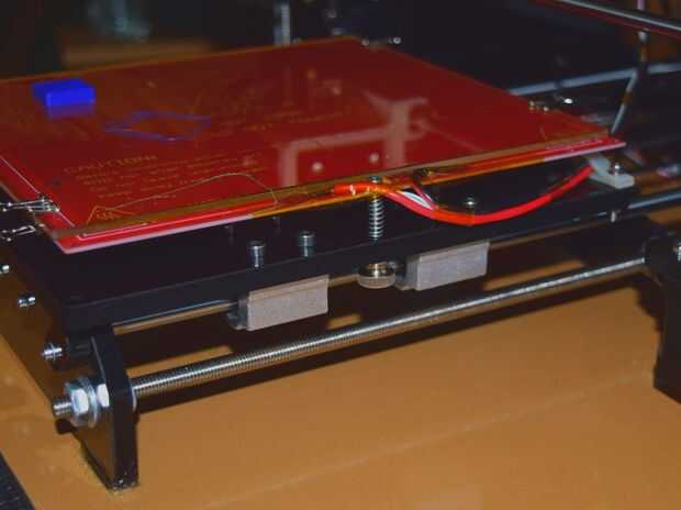 No he tenido que volver a nivelar la cama ya que he reinstalado. Esto es debido a la estructura general más robusta, y ahora puedo evitar poner mucha presión sobre el transporte porque puedo sacar de la placa de construir impresiones firmemente pegadas y aplicar la cinta. La cama ahora se calienta en unos 12 minutos.