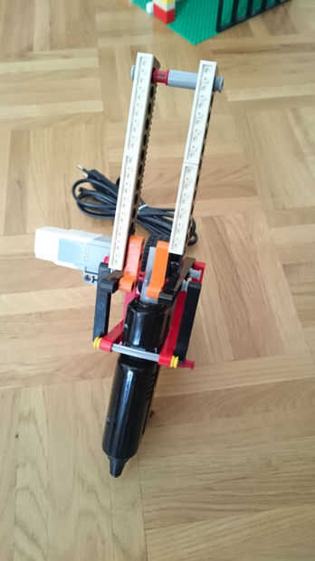 Se trata de una impresora 3D constituida el kit de Lego Mindstorms EV3. La base de es la pluma 3D que dispensa el plástico derretido. Movimiento de la pluma en 3 diferentes ejes es aprovisionado por motores mindstorms y son controlados por lego minds
