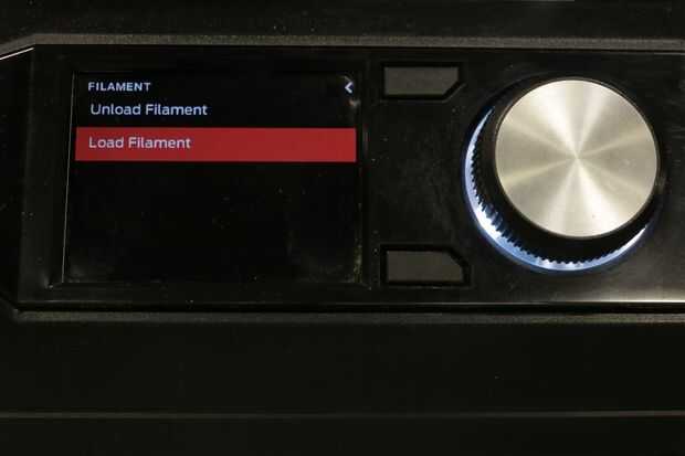 Seleccione "carga del filamento" pulsando el dial hacia abajo.