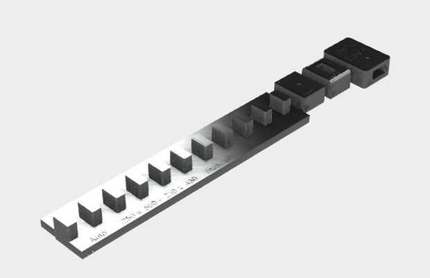 Tenga en cuenta que todos estos archivos fueron impresos con las espigas hacia arriba (+ Z). Si usted quiere hacer ajustes prueba mirando en otra dirección, simplemente gire antes de imprimir, pero asegúrese primero cambie la ubicación/orientación de la flecha "^" deboss para evitar confusiones.