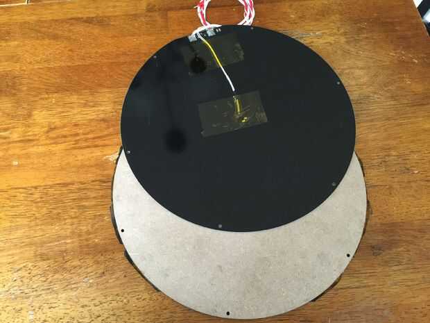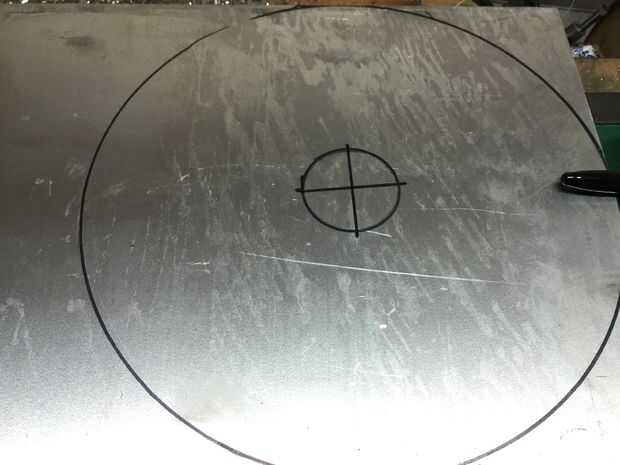 Marque el círculo en cada placa de aluminio. Puede usar una cama caliente existente como guía. Después de marcar el círculo, marque el centro del círculo. Utilicé el cortador de círculo de cristal para buscar y marque el centro del círculo.
