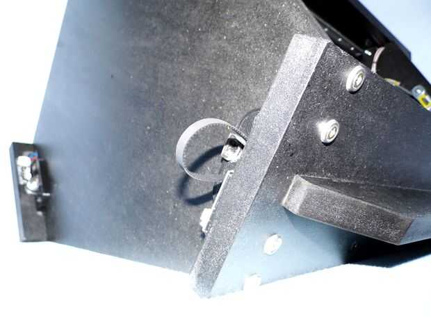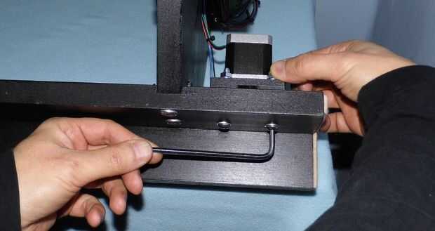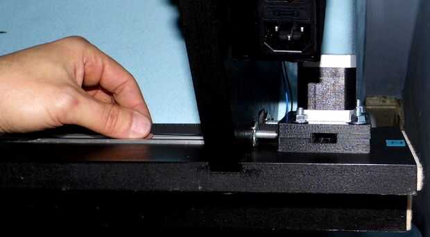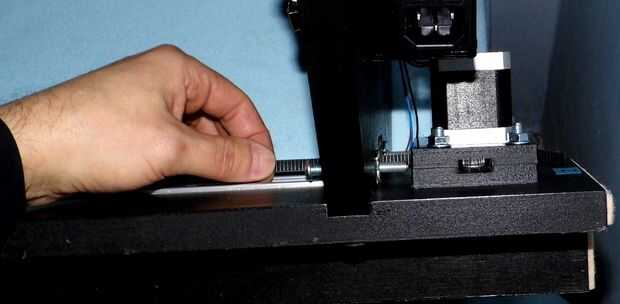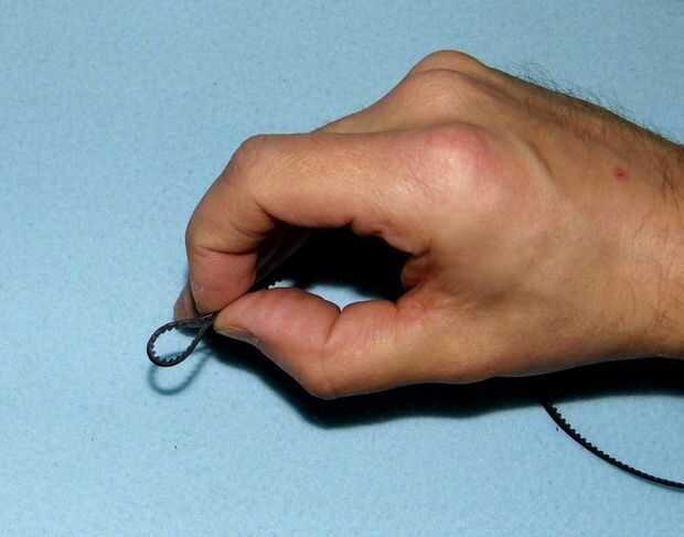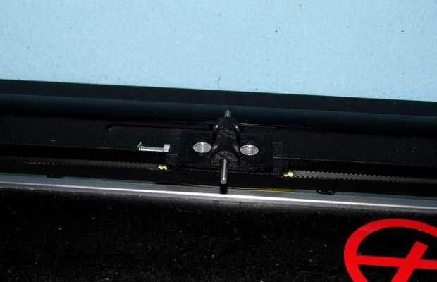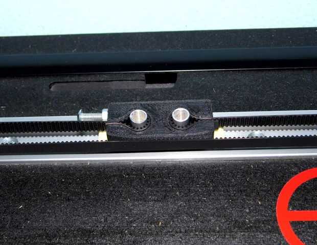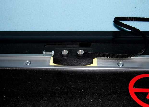 Poner la máquina lateralmente y montar un conjunto de cinturón a la vez. Colocar los dos tubos de aluminio en un carro de cojinete. Ahora empuje lineal carro n º 1 en los tubos, con el tornillo apuntando hacia el tope. Tomar un extremo de una correa y envuélvalo en un lazo como se muestra en el bosquejo. Inicialmente utilizar 52mm, pero si esto resulta demasiado estrecha, utilice 50mm en su lugar. Coloque el lazo sobre el tubo de aluminio más cercana al motor y en el carro Nº 1. Si esto resulta difícil, utilice un destornillador plano a cuidadosamente empujando en el cinturón. La correa alrededor de la polea del motor de alimentación. En el otro extremo, forman un gran lazo con la correa y empuje aunque la abertura del soporte de la polea. Ajustar la unidad de polea y tensar el cinturón al asiento de la Asamblea de polea en el soporte de la polea. (Nota: me gustaria tener los tornillos de ambas poleas apuntando en la misma dirección. Ordene hacerlo, marqué la polea del motor con un marcador permanente en una etapa anterior). Lazo el extremo de la correa como antes (50-52mm) y colocar sobre el tubo restante. Empuje lineal de transporte no.2 (con eje de 3mm) en posición y montar las arandelas y tornillos. Ajustar el par de tornillos M6x50 en el panel base para tensar la correa. Apriete los cuatro tornillos M6x50. Yo personalmente no use una llave de tuercas con brida, pero mantenerlos simplemente con mis dedos. Repita para las otras dos torres.