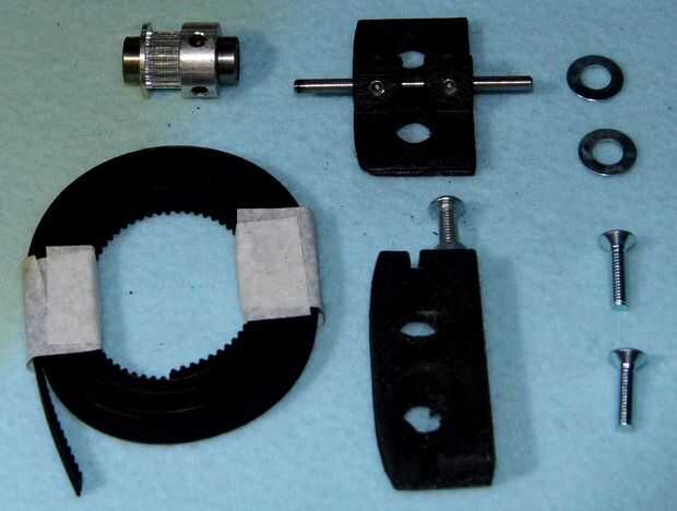 Para cada torre se necesita: un cinturón, una Asamblea de polea, un carro lineal n º 1 (con tornillo M4 + Tuerca), un carro lineal no.2 (con eje de 3mm), 2 tubos de aluminio de 8mm, 2 CSK M4x16 (= contador hundido) tornillos, 2 arandelas M6.