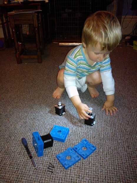 La polea para el motor debe de ser equipada la manera correcta y en torno a la ubicación exacta como se indica en el modelo 3D de un paso anterior. Agradezco a su ayuda experta durante esta etapa de mi hijo Nick!
