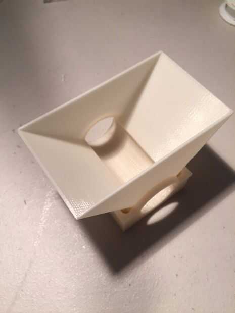 Diseñé y 3D impreso un montaje de tolva que se coloca sobre el tubo con 2 piezas atornillados. Si no tienes acceso a la tecnología requerida, puede simplemente construir su propia tolva o incluso utilizar un de 2 litros de la botella de la tolva, como hay una forma para alimentar automáticamente pelotillas en el estirador. Es decir, a menos que prefiera menos pasiva de la parte de la caída de los pellets en ti mismo.