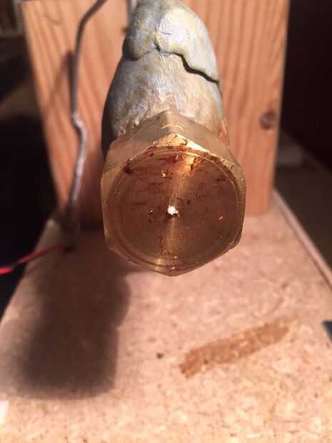 Para alcanzar el 1,75 mm de espesor después de refrescar, determiné que el agujero del tamaño adecuado para perforar era alrededor de 1,35 mm, que representa la extensión del filamento que se expulsa por la boquilla. Si tienes un taladro, se usa para este taladro. Aunque es opcional usando este método, el más recto el hoyo más fácil el filamento de control después de que sale de la boquilla. Si usted es bueno con un taladro de mano, que funciona muy bien para este procedimiento.
