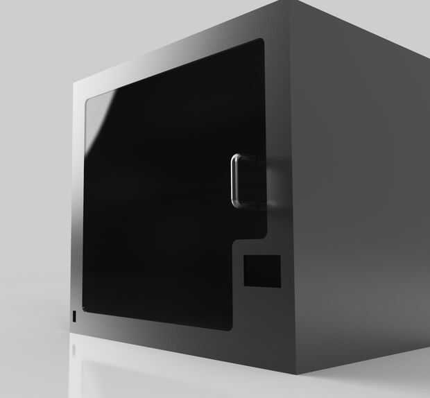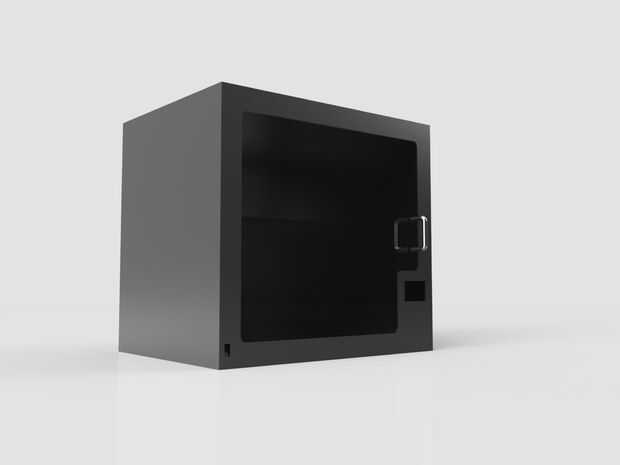 He redactado y representa un diseño con Autodesk 360 de fusión como se ve arriba. Las dimensiones eran apenas un poco más grandes que el marco original de K8200 por lo que podría incluir la alimentación y la electrónica interior. Decidí ir con una caja sólida con un plexiglás puerta/visualización ventana para que impresiones podrían evaluarse sin tener que abrir y bajar la temperatura ambiente del recinto. Hace unos meses reemplacé la electrónica del controlador en mi K8200 con un kit de rampas 1.4 con pantalla LCD por lo que he incluido un área para montar la pantalla así y una ranura para tarjetas SD y áreas múltiples de la entrada del USB. También en la parte inferior izquierda sería un interruptor de alimentación principal. Mientras trabajaba en el diseño me di cuenta de la K8200 dejó un área grande detrás del marco de apoyo del eje Z sin usar y decidió intentar caber en un gabinete separado hermético para el filamento. Las aberturas solas a esta cámara sería una puerta aislada y algunos tubos de PTFE va recto en el extremo caliente extrusora dentro del recinto principal.
