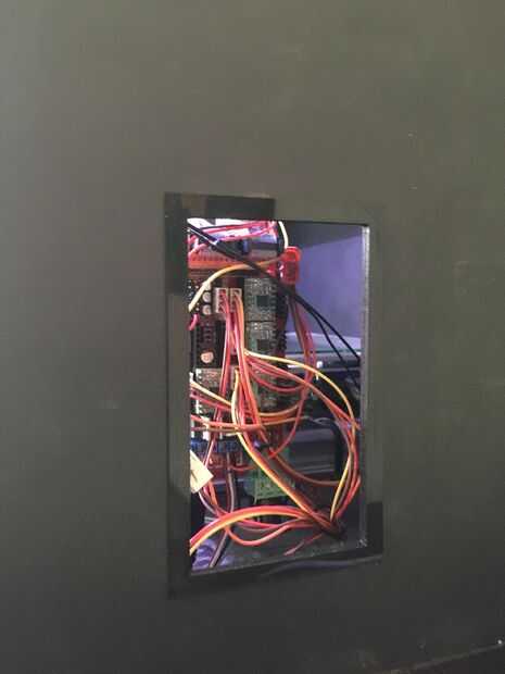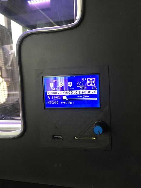 He tenido que desoldar la ranura para tarjetas SD montada en la parte posterior de la pantalla LCD y agregar extensión cable de cinta para poder montar la ranura en un área accesible debajo de la pantalla LCD. Esto ciertamente no es necesario ver cómo la Junta original en el K8200 no tiene una ranura para tarjeta SD y yo no he utilizado puesto que he tenido disponible. Único beneficio es ser capaz de imprimir sin la ayuda de un ordenador. El perímetro del panel impreso se adhiere a la cara del panel frontal del gabinete.