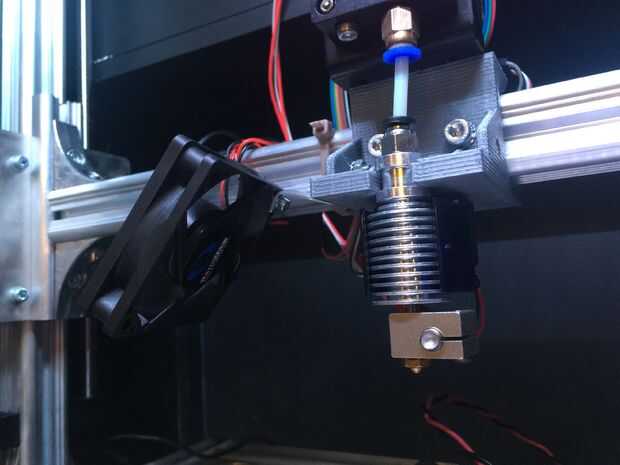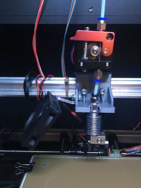 Además pequeño pasado es volver a agregar el ventilador principal a la impresora. Me decidí a actualizar el original ventilador de 40mm en el K8200 a un ventilador de 60mm. El flujo de aire es mucho mayor y es más bien que la original. El ventilador se monta a cada lado del soporte impreso con el mismo soporte de metal que fue montado en el bastidor de la K8200.