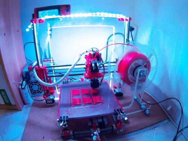 El diseño minimalista de final es el resultado de la inspiración en la estructura sin soporte de Prusa i3, el M10 rosca varillas y los rodamientos 608ZZ, todos los componentes de la Prusa i3 y el portacarretes.