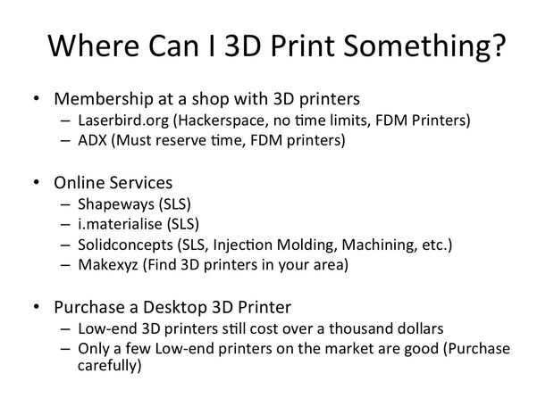 –Laserbird.org (Hackerspace, sin límites de tiempo, las impresoras de FDM)