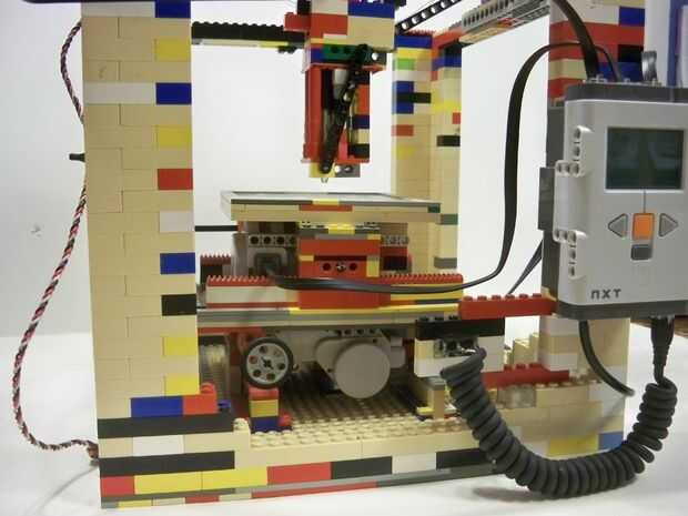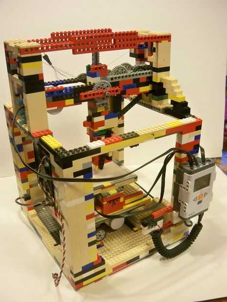 Este es un proyecto que he estado trabajando durante el último año, impresiones en cola caliente y está hecha casi completamente de legos. Su diseño se basa aproximadamente en la primera versión de la makerbot. Mientras imprime, llamo este más de un prototipo o concepto de un proyecto acabado. Estoy usando 4 fuentes de alimentación (3v extrusora motor, 7.2v para nxt, ventilador de 12v y 115v para la pistola de pegamento caliente) y tener que activar manualmente la extrusora y desactivar, (aunque estoy trabajando en eso). Desafortunadamente, debido a mi falta de conocimientos de programación, cada movimiento tiene que ser programado manualmente desde el software de programación de NXT, todavía tengo que encontrar un intérprete de código de g para el NXT.